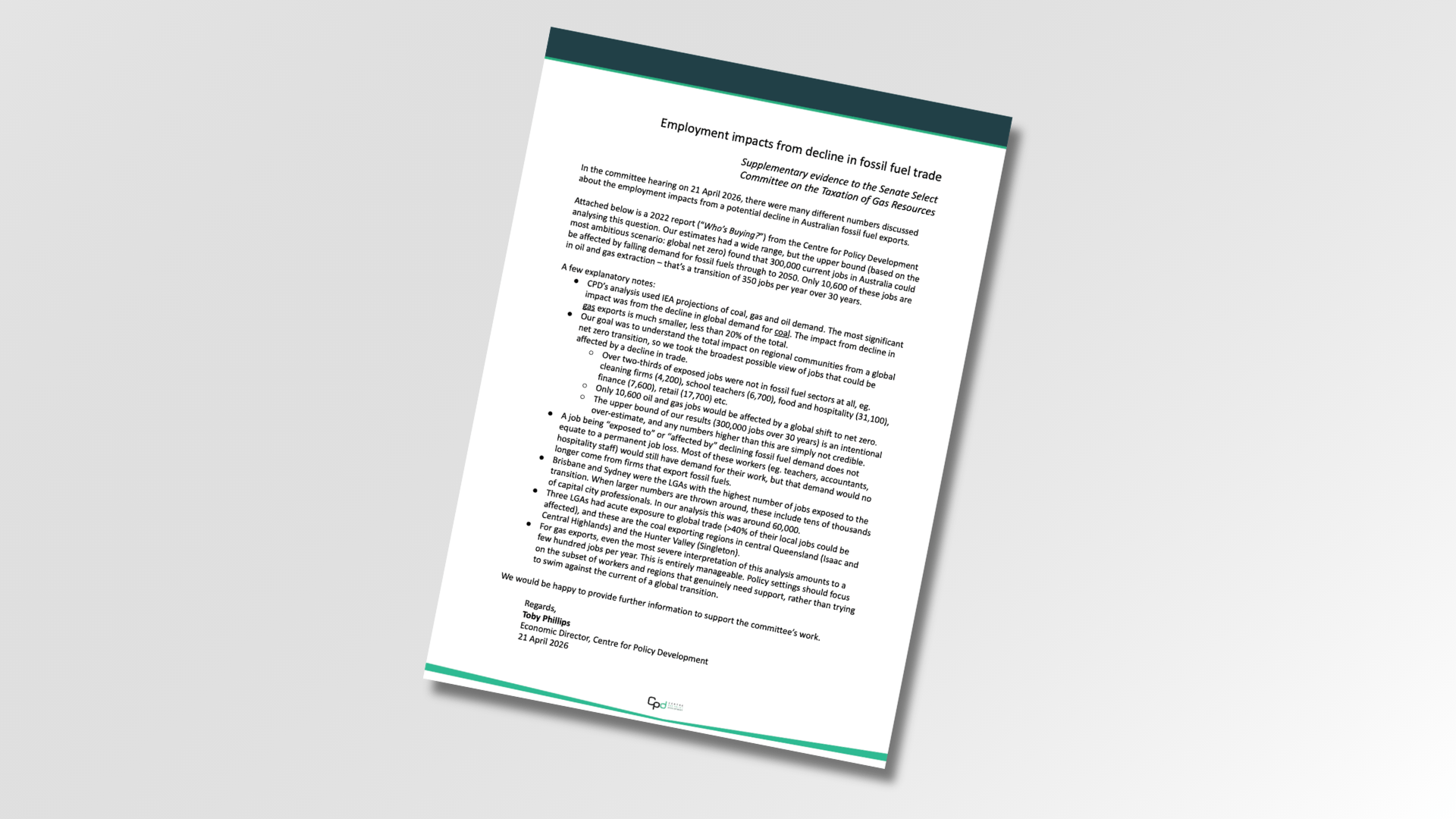 CPD is about to embark on an economic modelling exercise to develop our proposal for an energy export transition framework, with publication due later this year.